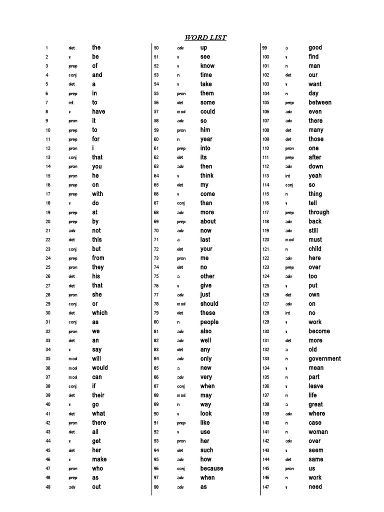 Common Word List,,Common Word List,